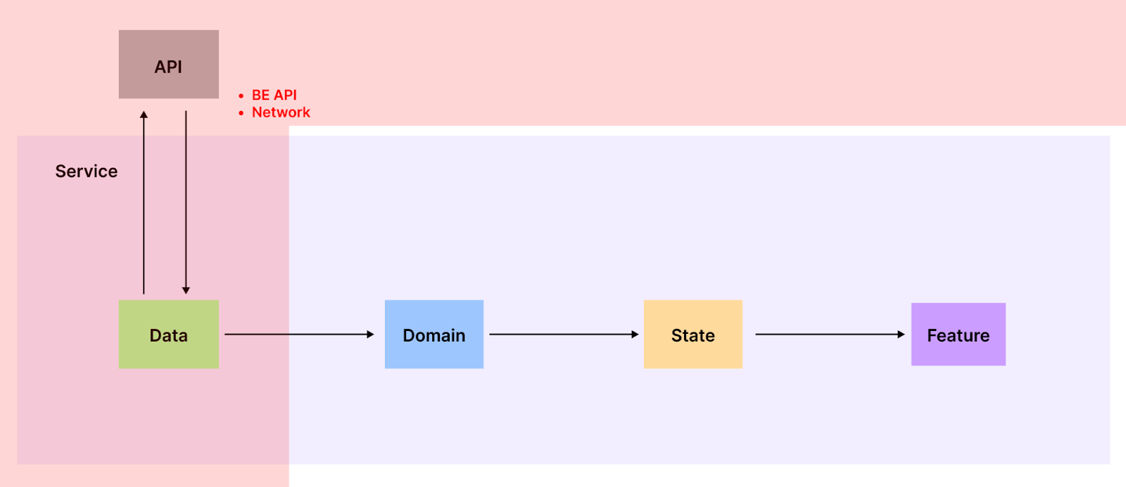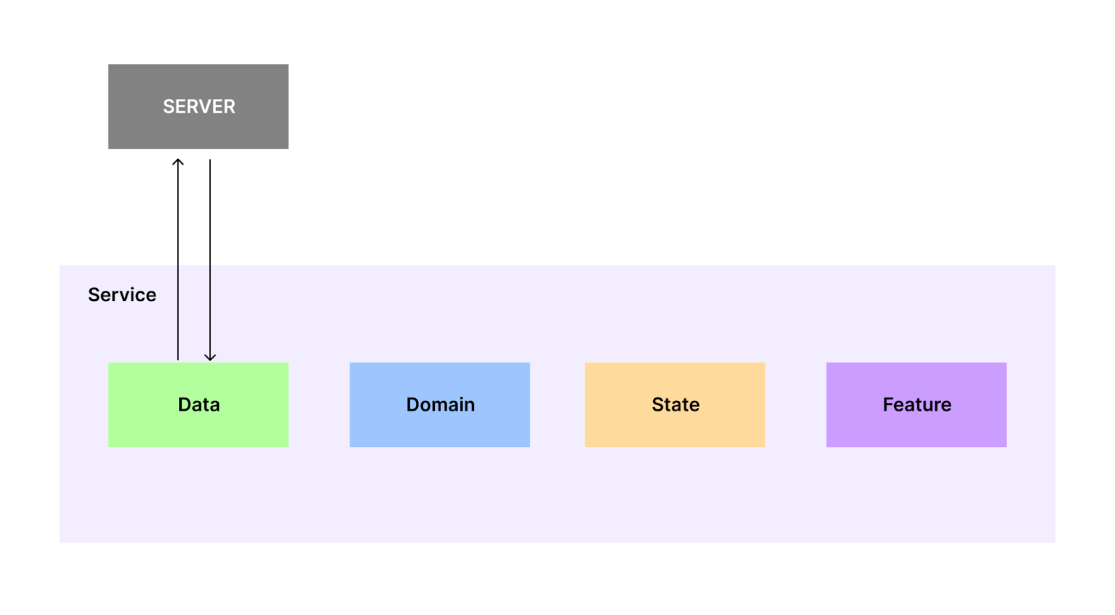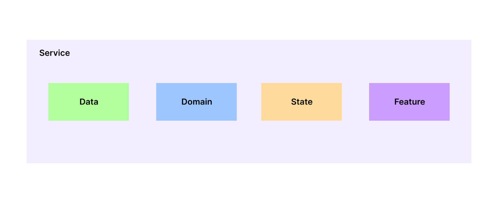 계층은 하나의 Service 내 Data, Domain, State, Feature 4개로 구분됩니다.