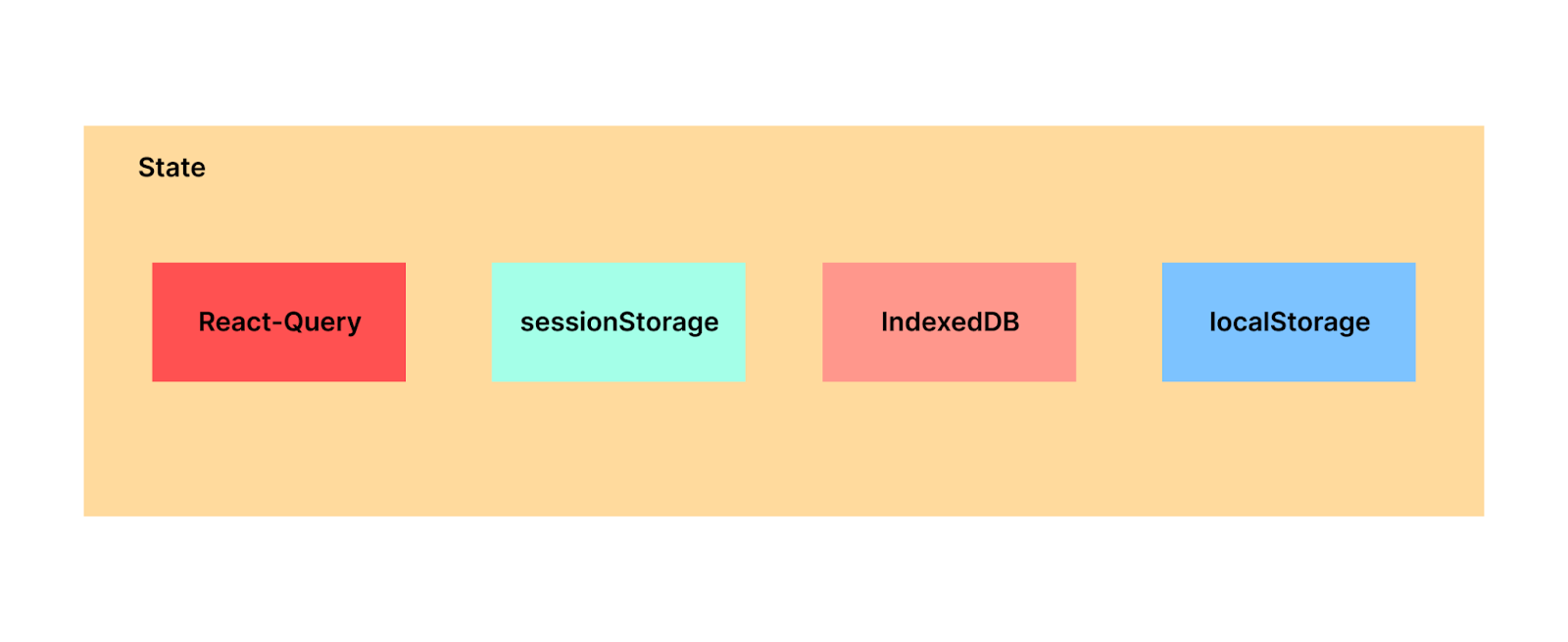 상태 계층에서는 localStorage, sessionStorage, IndexedDB 등의 스토리지와 기타 상태들을 처리하는 계층입니다. 저희 팀의 경우 React-Query 또한 해당 계층에 포함시켜 상태의 개념으로 사용합니다.
