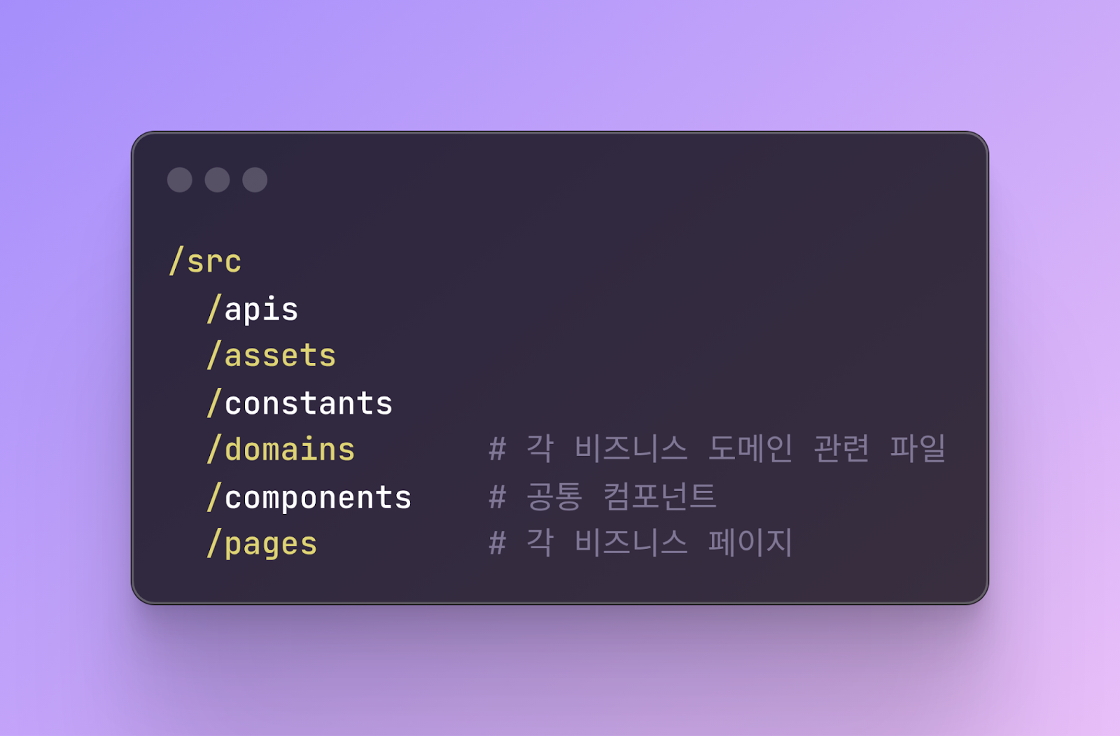 겉으로 보기엔 괜찮아 보일 수 있지만, 실제로는 디렉토리 간 경계가 명확하지 않았습니다. pages에 비즈니스 로직을 포함한 컴포넌트가 있거나, domains에 공통 컴포넌트가 포함되는 등 일관성이 부족했습니다. 이로 인해 코드를 탐색하기 어렵고, 예측 가능한 구조가 아니기 때문에 생산성 저하로 이어졌습니다.