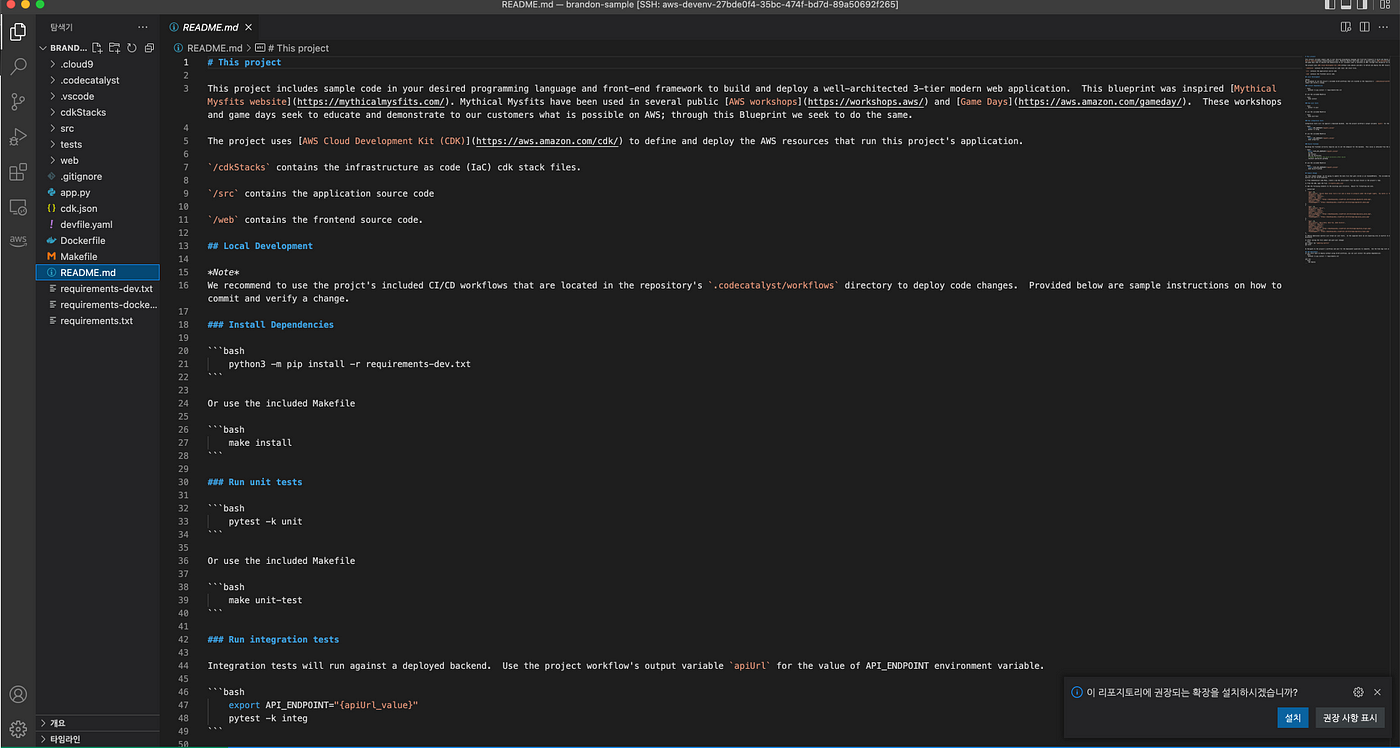 우선 Dev Environment 를 생성해보겠습니다. (VSCode 활용)