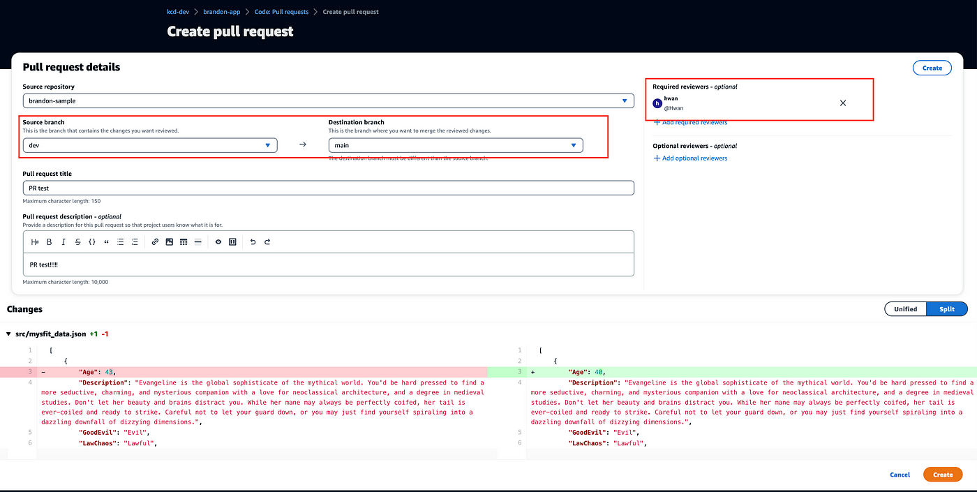- 변경된 부분 확인과 reviewer 설정도 가능하네요!