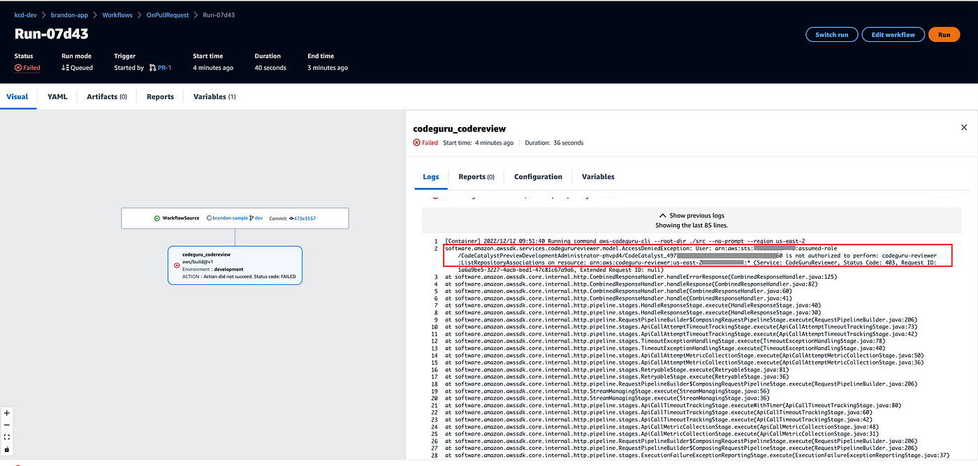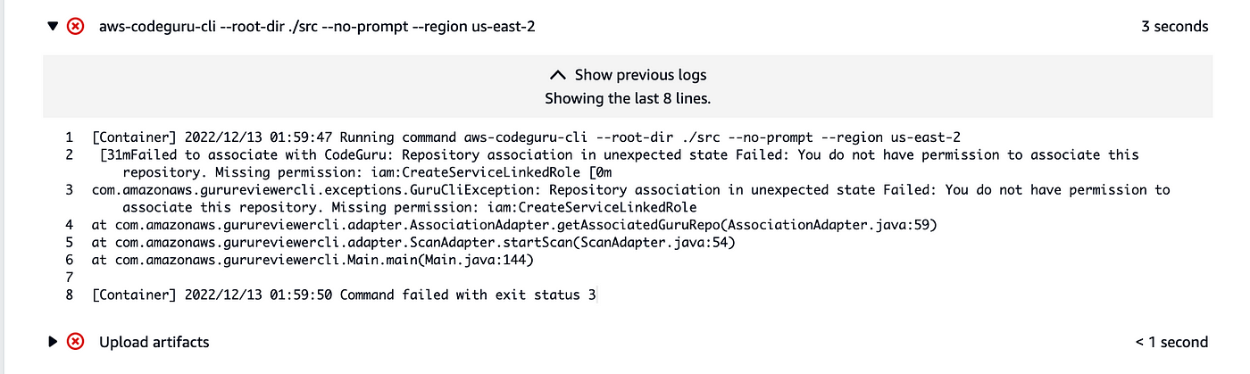 로그를 보니, IAM Role 에 권한이 부족해서 발생한 에러군요!