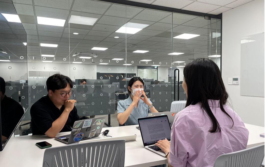 노엘: 제가 처음 봤던 인재 영입 공고에도 개별 구성원의 탁월한 문제 해결 능력을 강조하는 내용이 있었어요. 실제로 와보니 진짜 전문성을 강조하는 조직이란 걸 느낄 수 있었어요. 우리가 흔히 떠올리는 ‘전문가’의 딱딱한 이미지 때문에 처음에는 ‘저 사람 까다로울 것 같아, 저 사람이랑은 일하기 어렵지 않을까’라는 생각도 했었는데요.