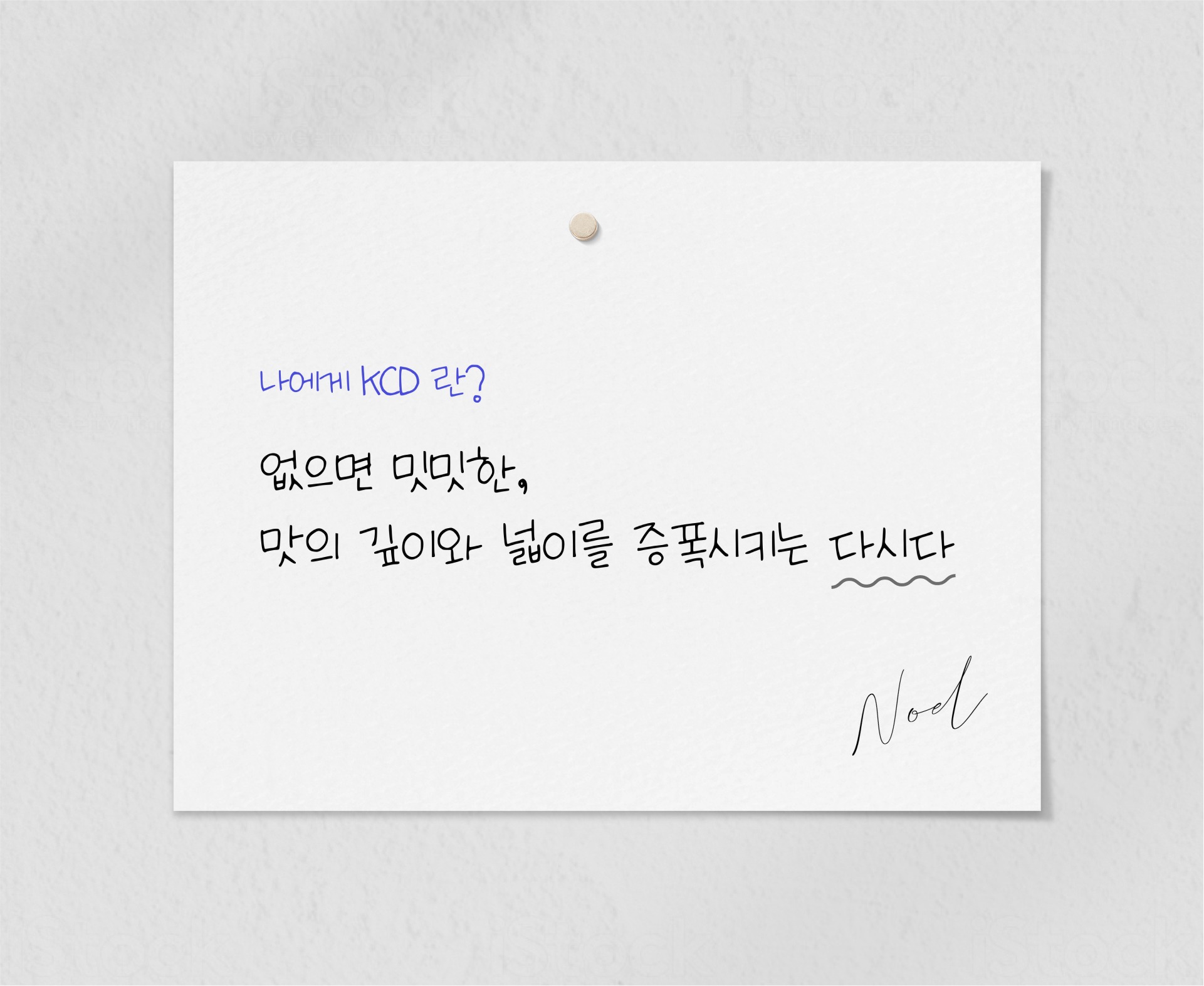 노엘: 조직 구성원을 하나로 묶어줄 강력한 문화적인 키워드가 만들어지고, 속속 잘 전파되면 좋을 것 같아요. 새로운 구성원을 처음 만나는 자리에서도 KCD에 다닌다는 이유로 바로 대화를 시작할 수 있는 주제 같은 것들요. 개인적으로는 식자재 공급 서비스에서 10배의 성장을 경험하고 싶어요.