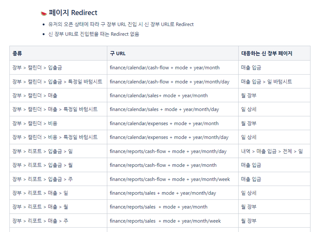 이용자가 장부 페이지에 접근 시 먼저 이용자의 버전을 확인한 후 기존 장부 또는 새로운 장부를 표시합니다. 여기서 문제는 대부분의 이용자들이 일단 기존 화면으로 접근한다는 점이었습니다. 때문에 기존 장부 화면에서 새로운 장부 화면으로 리다이렉트 되는 것을 추가해야 했습니다.