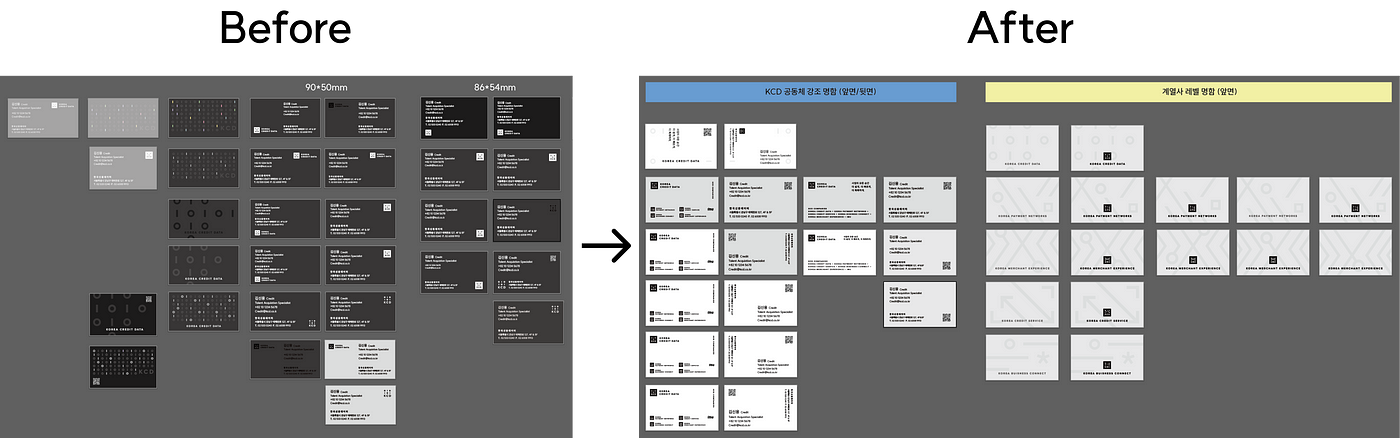 명함과 같은 어플리케이션들을 조형적인 관점이 아닌 경험의 관점에서 생각해서 디자인하는 계기가 되었어요. 중간 피드백 이후로는 명함에 어떤 내용을 넣고, 어떤 것을 강조할 것인지, 전달하고 싶은 메시지의 위계를 우선으로 생각하면서 디자인을 했습니다.