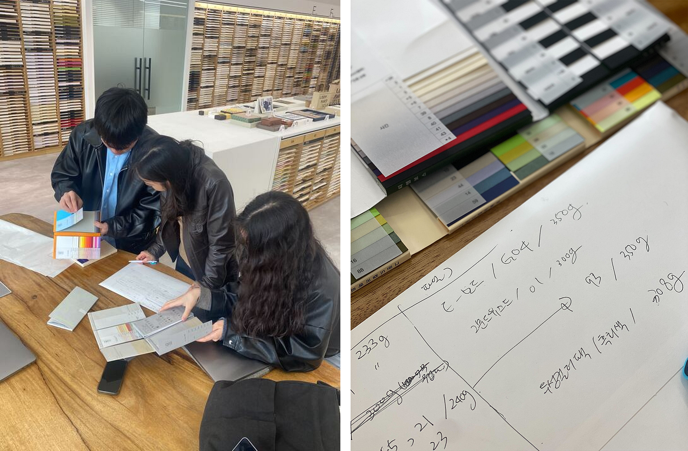 Kwon: 회색 지류를 선택하는 것에 있어서 같은 브랜드임에도 불구하고 지류의 색상에 온도차가 있거나, 그램 수가 적합하지 않거나, 마음에 들어도 한 종 밖에 없는 등의 수많은 제약이 있었지만 최종적으로 좋은 결과물로 제작된 것 같아 너무 다행입니다아 ~~~