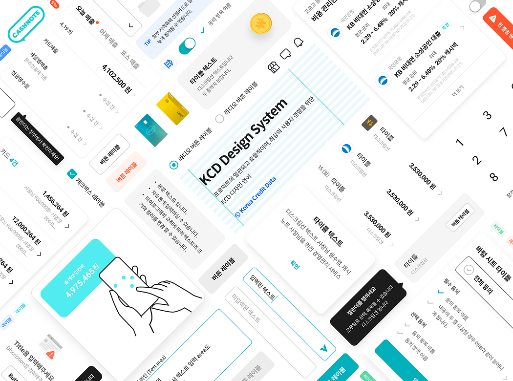 시스템과 이에 앞서 제가 속한 ‘프로덕트 디자인팀’에 대해서 먼저 설명해 드리겠습니다. 프로덕트 디자인팀은 KCD가 서비스하는 다양한 프로덕트의 ‘경험’을 디자인합니다. 가장 오래된 프로덕트인 캐시노트 카카오톡 챗봇 서비스부터 시작해, 캐시노트 스마트폰 앱, 웹 서비스, 포스(POS, Point Of Sales, 판매단말기) 등 여러 디지털 프로덕트를 통해 캐시노트의 사용자인 사장님들과 만나고 있습니다. KCD의 비즈니스는 “데이터를 바탕으로 사장님들이 사업을 꾸려나가는 동안 맞이하는 모든 순간에 도움을 드리자”는 것인데요. 저희 팀은 프로덕트 디자인을 통해 사장님들에게 최상의 경험을 드리고, 이러한 문제를 해결하고자 하고 있습니다.KCD의 프로덕트 디자인팀은 총원 4명(2021년 6월말)으로 구성돼 있습니다. 모두 입사한지 반년 남짓 밖에 지나지 않은 ‘새내기’ 팀이라고 할 수 있는데요. 입사 직후 비즈니스가 빠르게 성장하고 확장되는 과정에서 합류하게 된 상황이었습니다.
